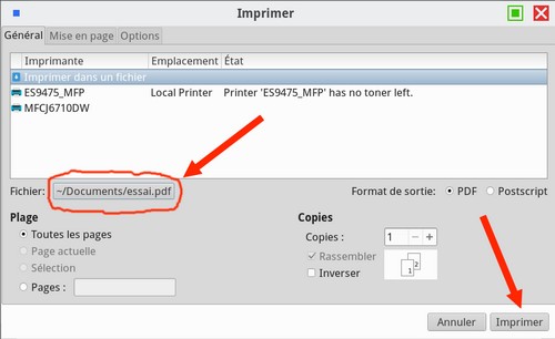 c - Avec Flèche-Bas descendre jusqu’à : imprimer.