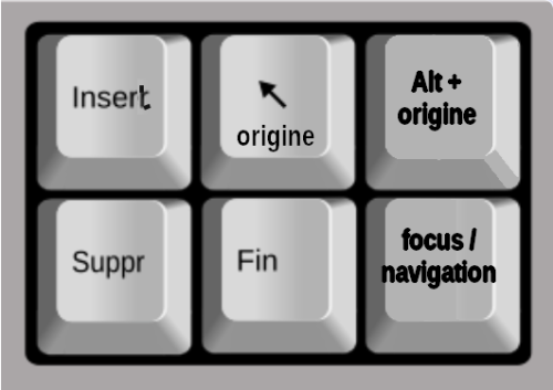 Sur le pavé numérique désactivé, la touche Origine correspond au chiffre 7.